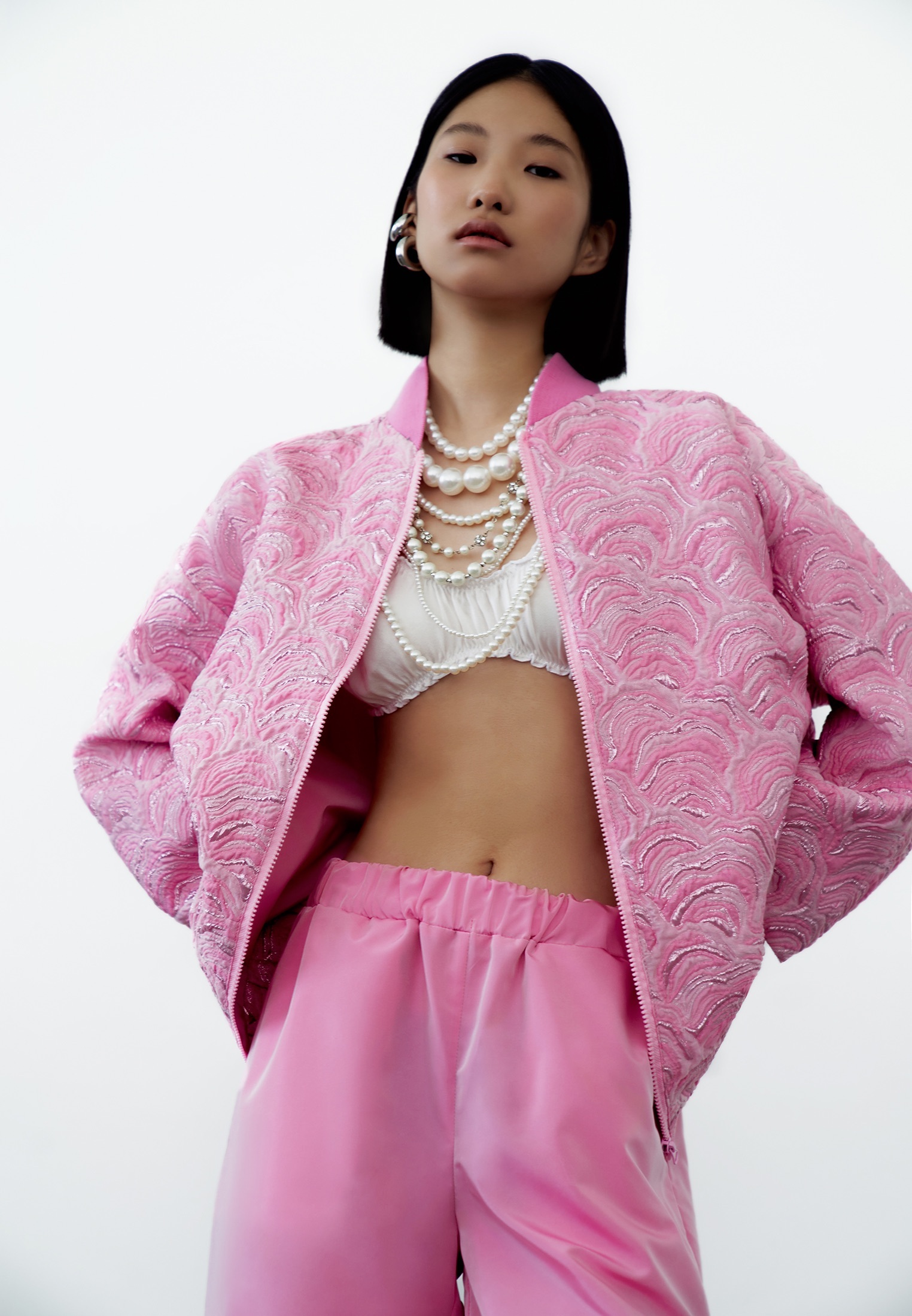 Oversized жакет-бомбер с карманами, застёгивается спереди на молнию