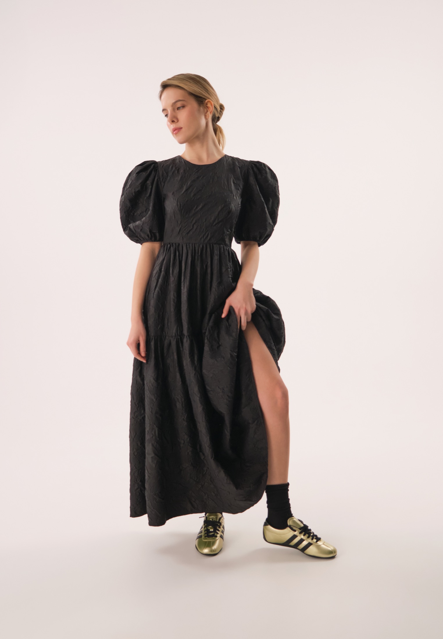 Платье миди с пышными рукавами, на подкладке