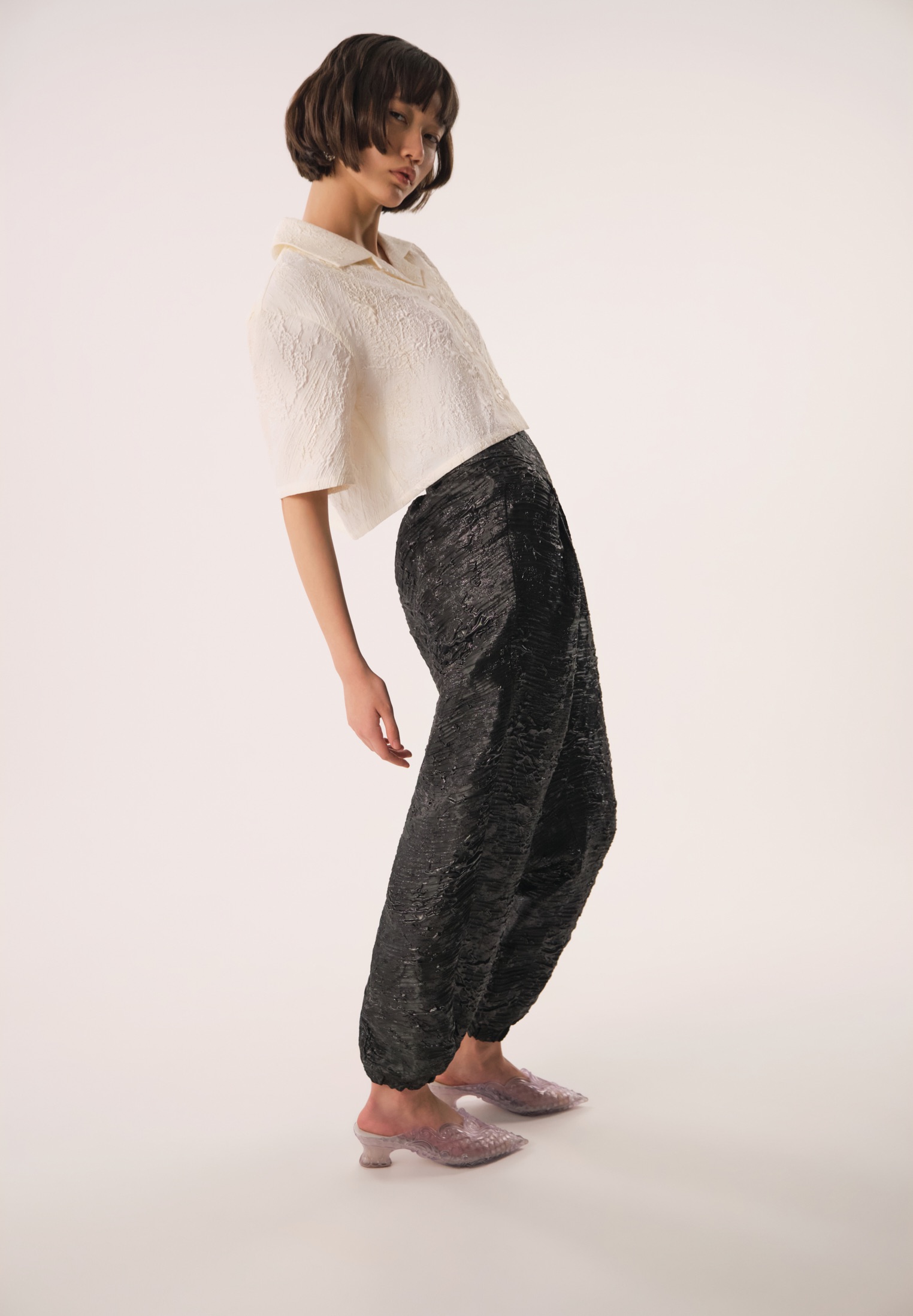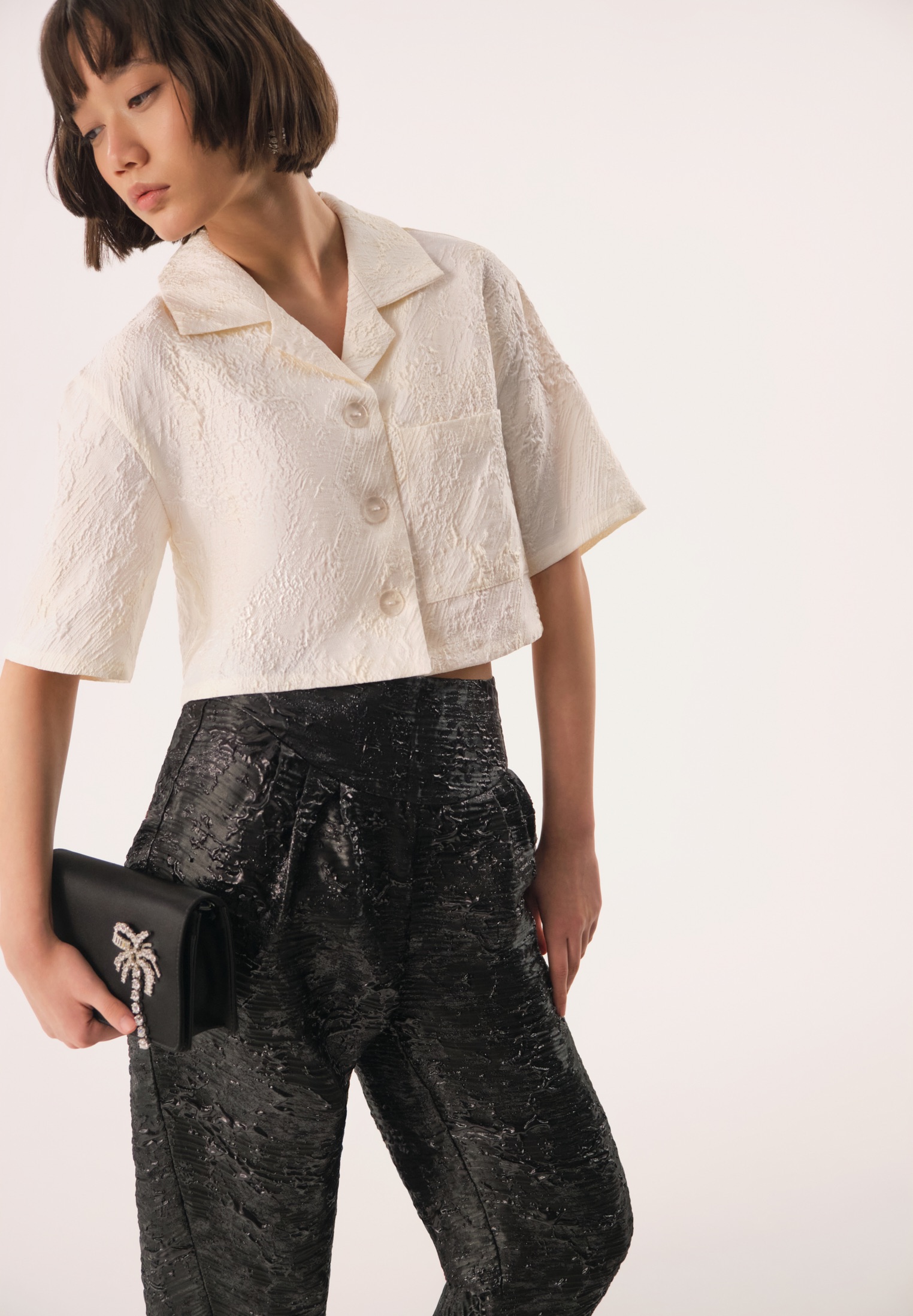 Укороченная oversized рубашка с коротким рукавом