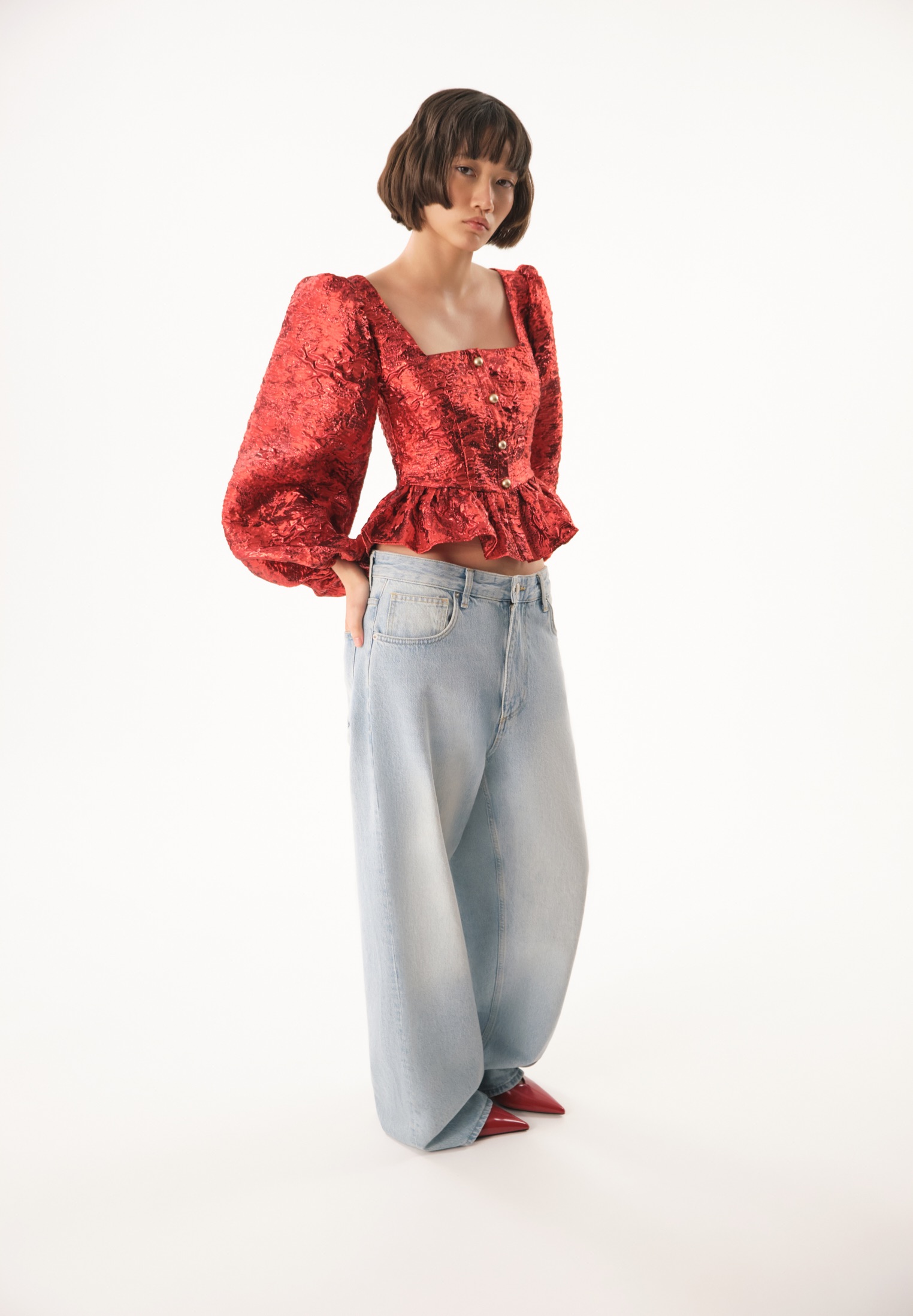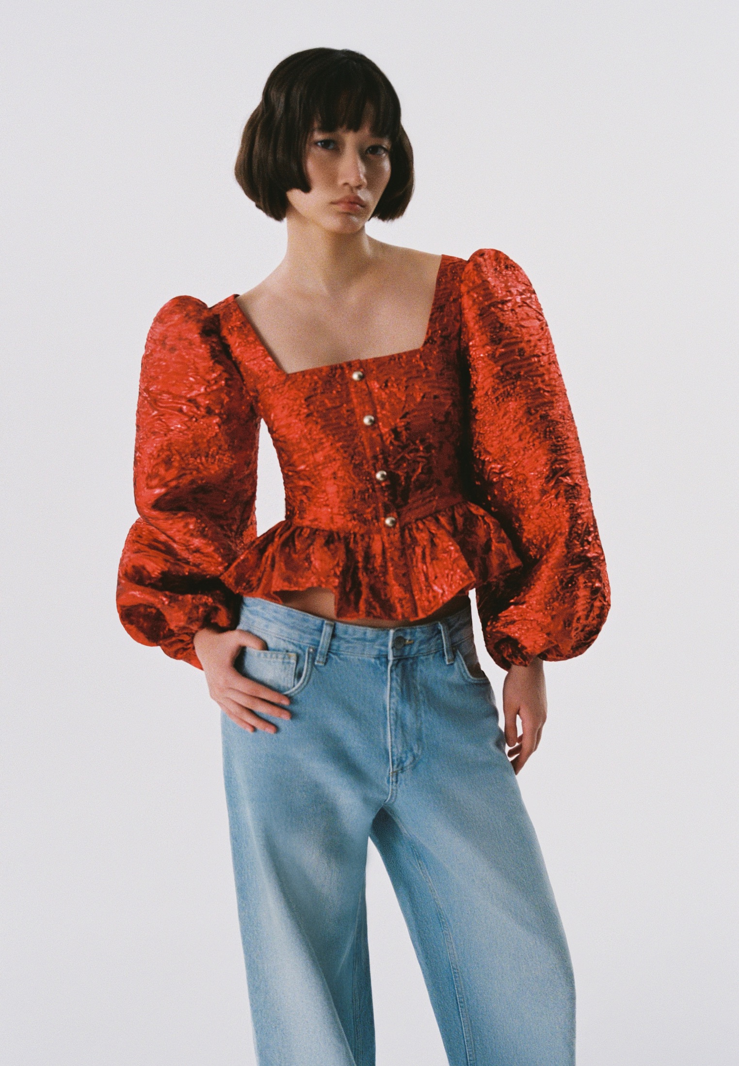 Топ с длинным рукавом, застёгивается спереди на пуговицы