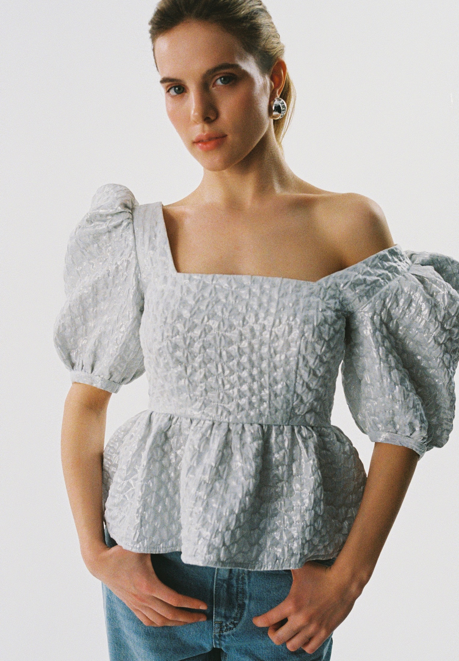 Топ с коротким рукавом, застёгивается сзади на кнопки