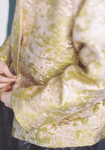 Завершающий образ королевы ночи — объемные золотые брюки Bonbon в сочетании с воздушной накидкой Golden leaves, словно сотканной из настоящих золотистых листьев. В конце волшебного путешествия нас ждет настоящий клад — старинный сундук с сокровищами: елочными игрушками и драгоценными нарядами Abitu.