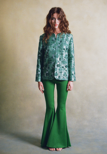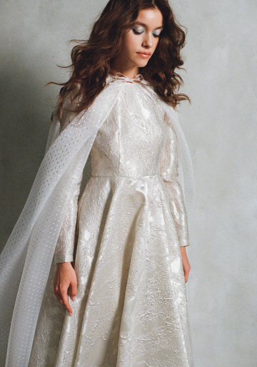 Новая модель Abitu — удлиненный изумрудный жакет с узором из зеленых листьев Green Clover. И это еще не все — образ с жемчужно-серым, словно покрытым инеем платьем Snow Queen и полупрозрачным серебристым кейпом Silver Crystal имеет шансы стать самым нарядным на новогодней вечеринке.