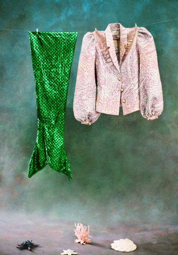 На съемке мы сначала погрузились на глубину моря, а потом оказались на песчаном берегу: Саша примерила жакет Mermaid Purple, классическую модель с длинным рукавом Blue Gold и топы с открытыми плечами Medusa и Undina.