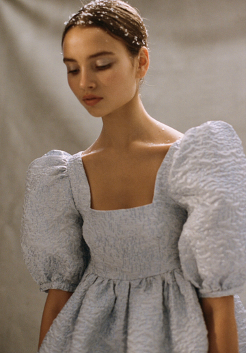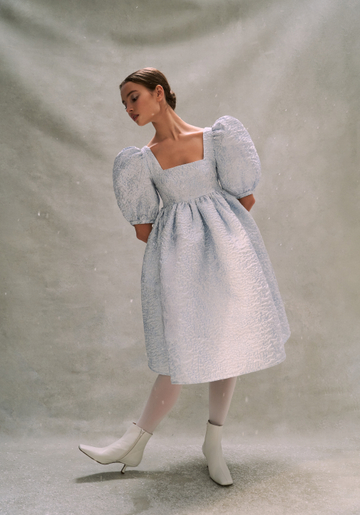 Пышное нежно-голубое платье Baby blue, ещё более нарядное мерцающее Aurora и изящный топ с открытыми плечами White swan — бестселлеры Abitu и идеальный наряды для самого волшебного сезона в году.