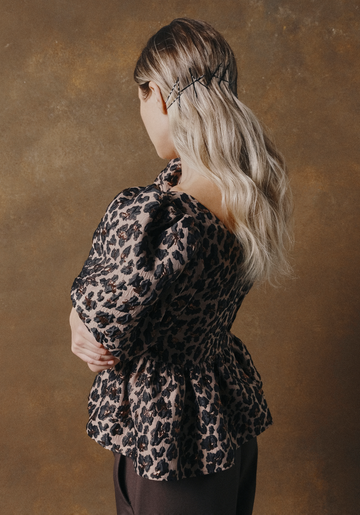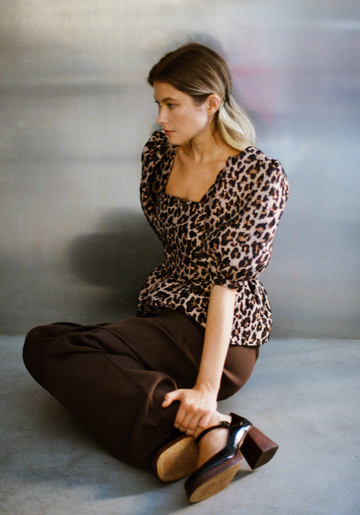 из семейства кошачьих — топ с пышными рукавами и квадратным вырезом Leopard brown.