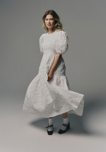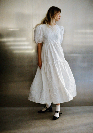 Еще одна новинка — длинное белое платье Coco white из невесомого жаккарда с легкой хлопковой подкладкой.
